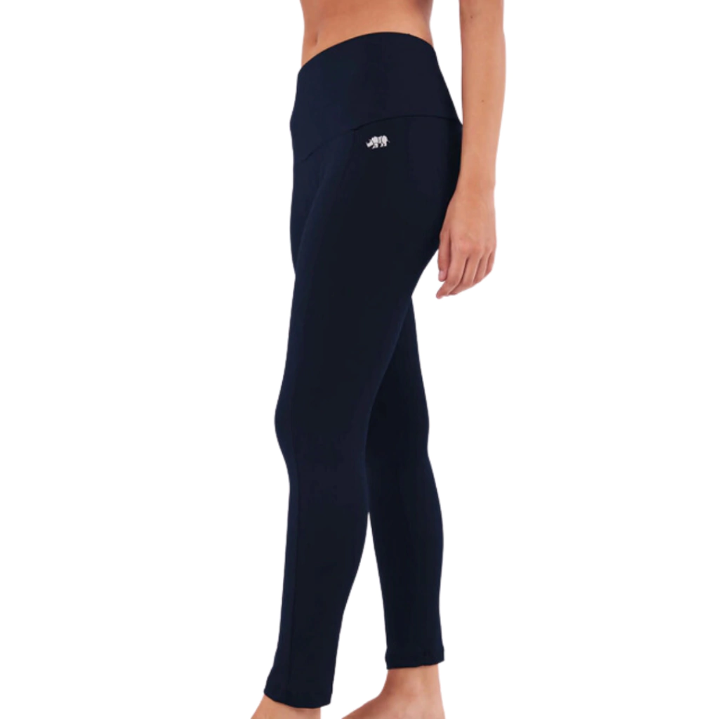 Calza básica tiro alto con cintura ancha de tela doble para mayor soporte y sujeción. Realizada en microfibra con elastano.