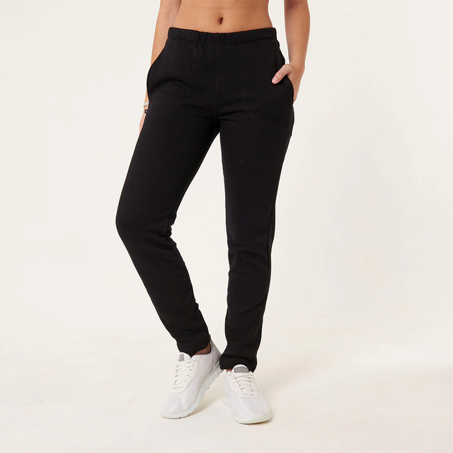 Pantalón recto confeccionado en algodón frisado, con detalles de morley en el lateral.